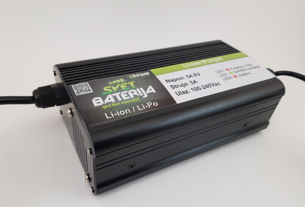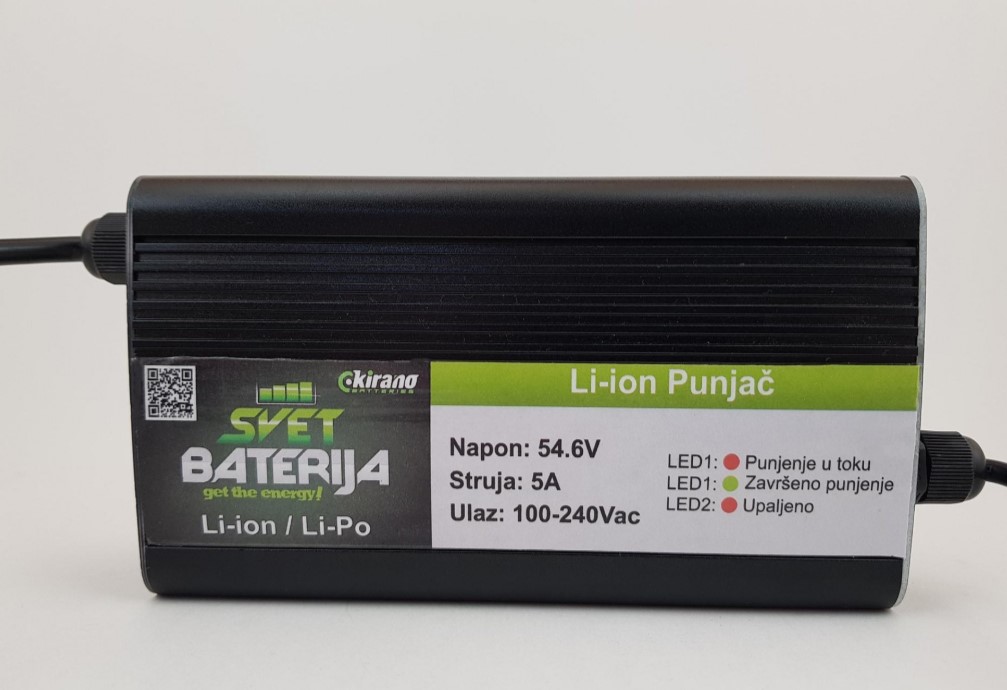 54.6V 5A li-ion punjač za električni bicikli, električni skuter, ebike i slična električna vozila koja koriste 18650 3.6V vezane serijski sa ukupnim nominalnim naponom od 48V. Punjač poseduje zaštitu od kratkog spoja, obrnutog polariteta i prepunjavanja, takođe poseduje ventilator za hlađenje komponenti prilikom punjenja, što je sigurna zaštita od pregrevanja!