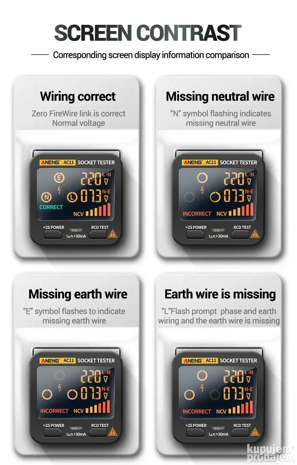 ANENG AC11 Tester Ispravnosti ŠUKO Utičnica 220V 230V ANENG AC11 Tester Ispravnosti ŠUKO Utičnica 220V 230V ANENG AC11 Tester Ispravnosti ŠUKO Utičnica 220V 230V