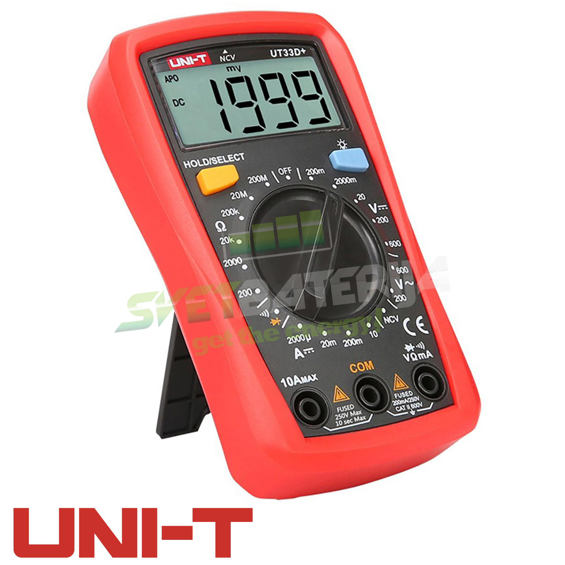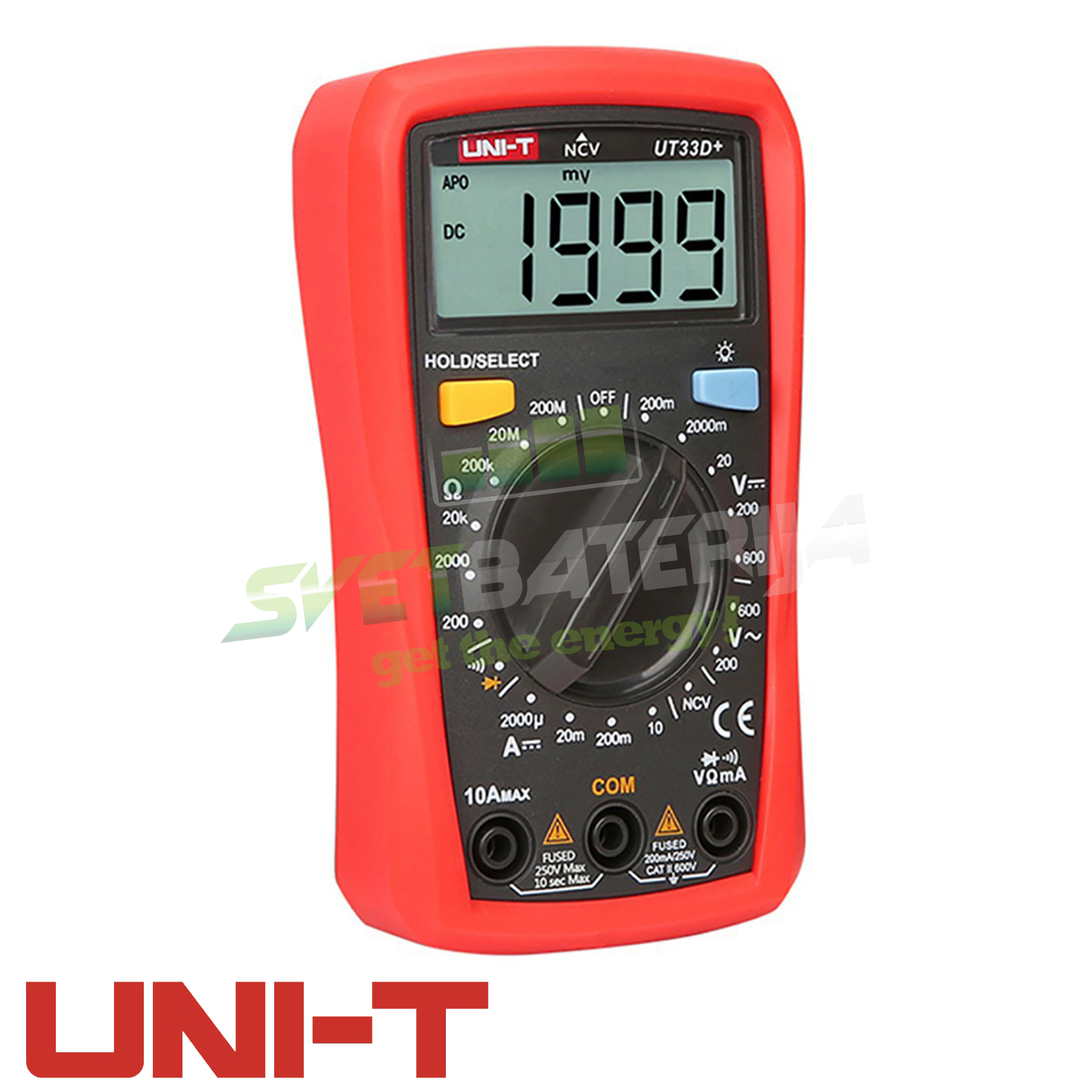 UNI-T UT33D+ multimetar je jedan od najnovijih modela UNI-T DMM serije, apsolutno definiše kvalitet mini unimera! UT33D+ unimer je namenjen za brzo merenje AC/DC napona, struje i otpora. Ističe se po širokom displeju i NCV beskontaktnoj detekciji napona u zidu ili kablu, automatsko gašenje, pozadinsko osvetljenje, test diode i zujalica. UT33D+ je perfektan multimetar za studente elektrotehnike, servisere, električare i zbog svojih malih dimenzija zgodan je i za transport!