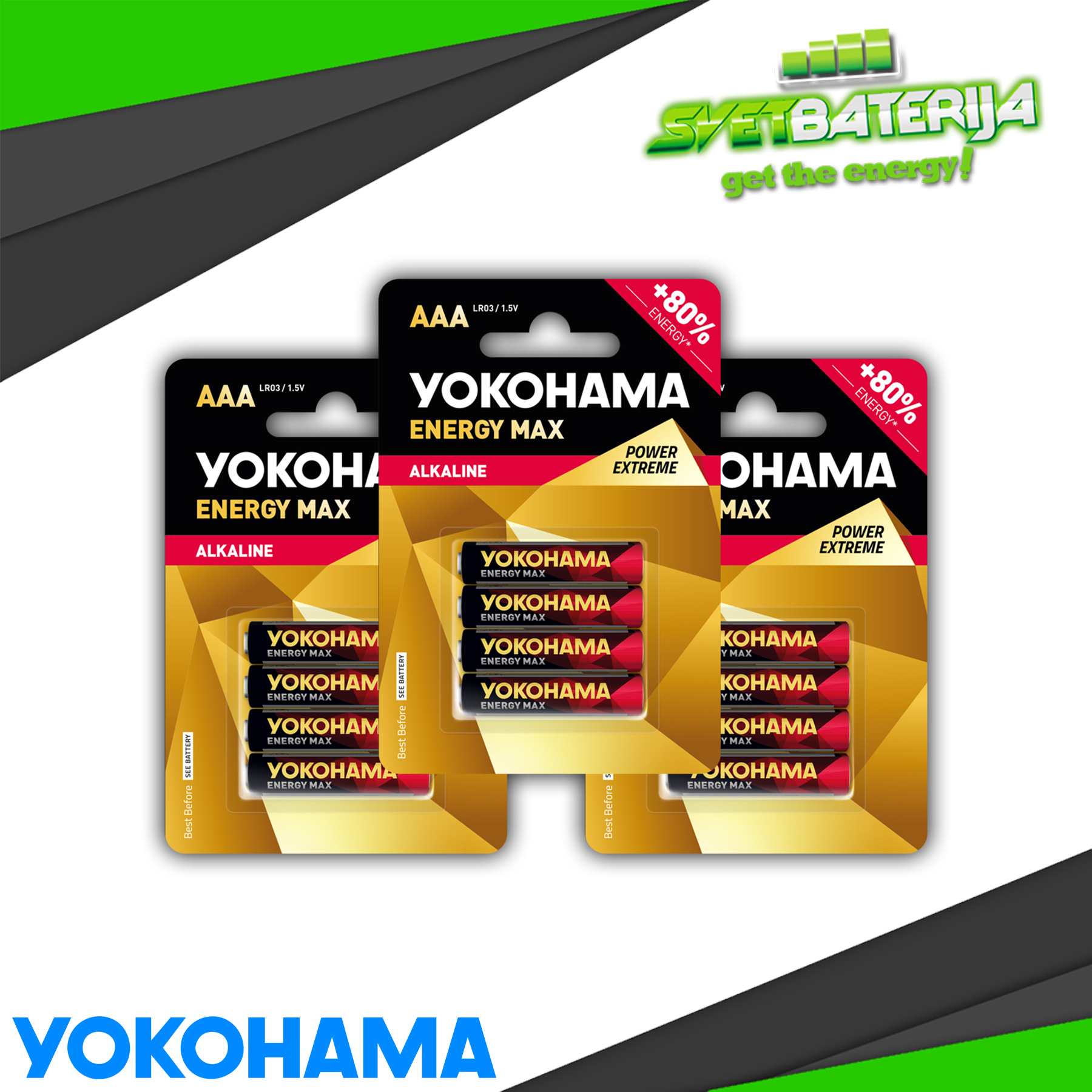 YOKOHAMA Alkalna AAA LR03 1.5V Baterija ekonomične i pouzdane baterije za svakodnevnu upotrebu namenjene i za zahtevnije uređaje kao što su: fotoaparati, MP3 plejeri i baterijske lampe, kao i za srednje zahtevne uređaje - daljinske upravljače, dečije igračke, stone ili zidne časovnike itd.