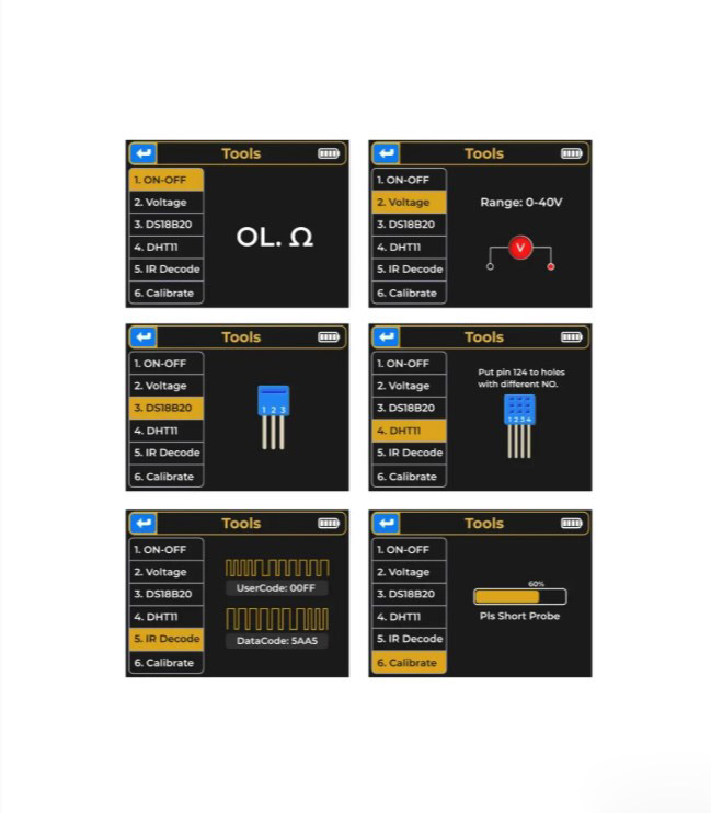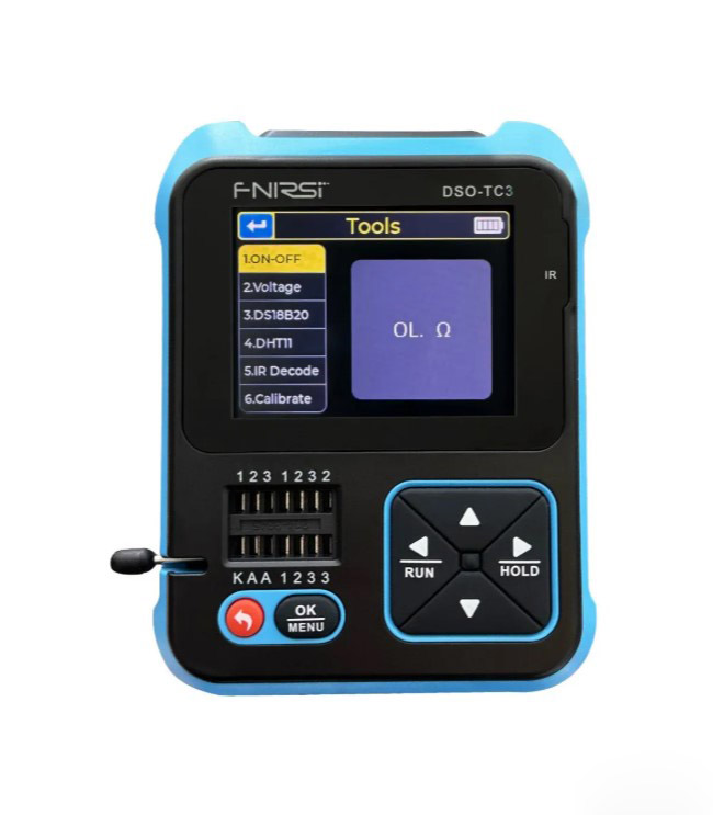 Fnirsi DSO-TC3 je kvalitetan osciloskop, tester ESR tranzistora i generator signala. Funkcija digitalnog osciloskopa: Sa brzinom uzorkovanja u realnom vremenu od 10MS/s i propusnim opsegom od 500Khz. Podržava maksimalno merenje signala napona od 400V. Funkcija testera tranzistora: Automatski identifikuje i meri različite tranzistore, uključujući NPN i PNP triodu, N-kanalni i P-kanalni metalni oksid-poluprovodnički tranzistor sa efektom polja, JFET, diode, dvostruke diode, tiristore, kao i otpornike, induktori, kondenzatore , tranzistor sa efektom polja itd. pasivna komponenta. Funkcija generatora signala: 6 vrsta talasnih oblika signala: sinusni talas, pulsni talas, trougaoni talas, talasni talas, jednosmerna struja. 1-100KHz podesiva izlazna frekvencija. 3.3V podesivi izlazni napon. 0-100% podesivi odnos izlazne dužnosti.