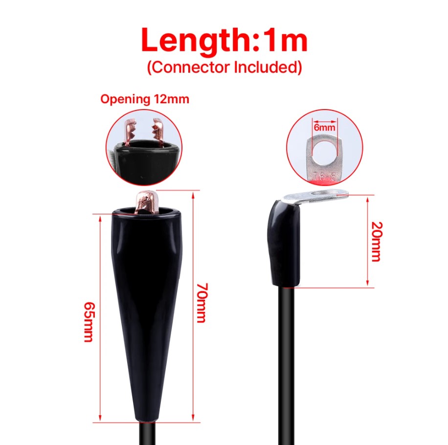 11AWG Kablovi X36A za Riden su namenjeni za napajanja iz serije iz RD6024/RD6030, podržava maksimalnu struju do 36A. Konektori standardne buksnice M6 šaraf na krokodilke, maksimalno otvaranje 12mm.