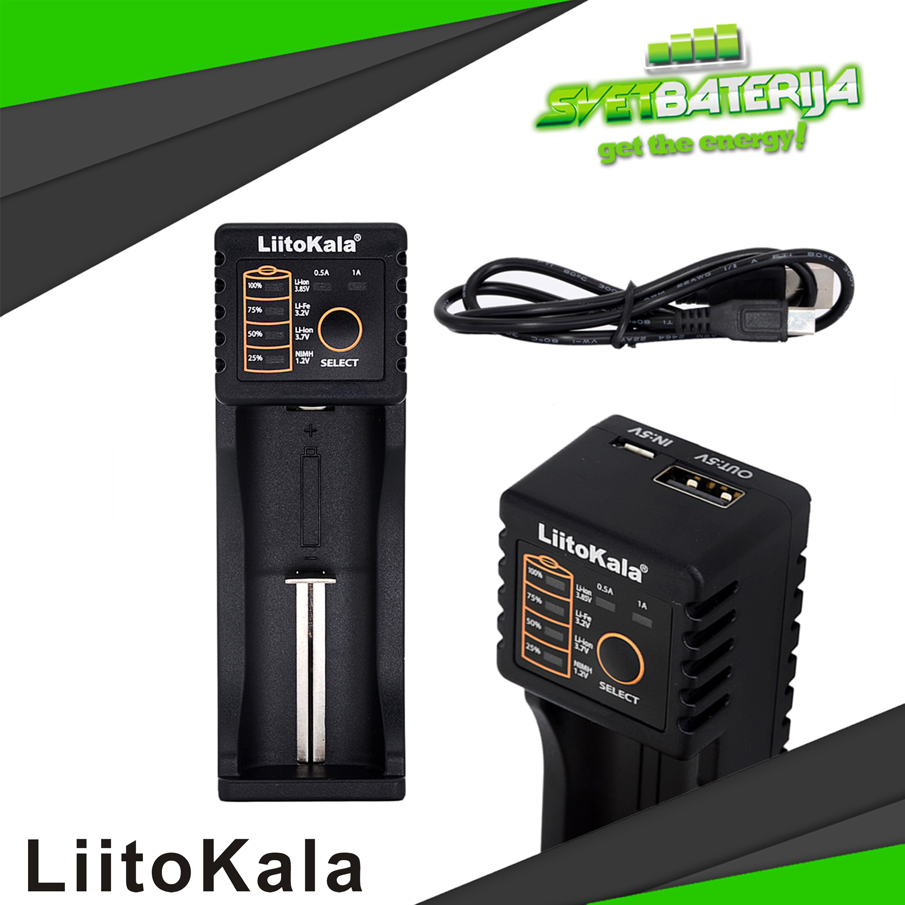 LiitoKala Lii100 punjač je dizajniran tako da bude lako prenosiv, fleksibilan i namenjen za više vrsta baterija. Može da detektuje tip baterije i da automatski puni strujom od 0.5A ili 1A. Ugrađeni LED indikatori prikazuju status punjenja i takođe poseduje 5V / 1000mAh USB izlaz.