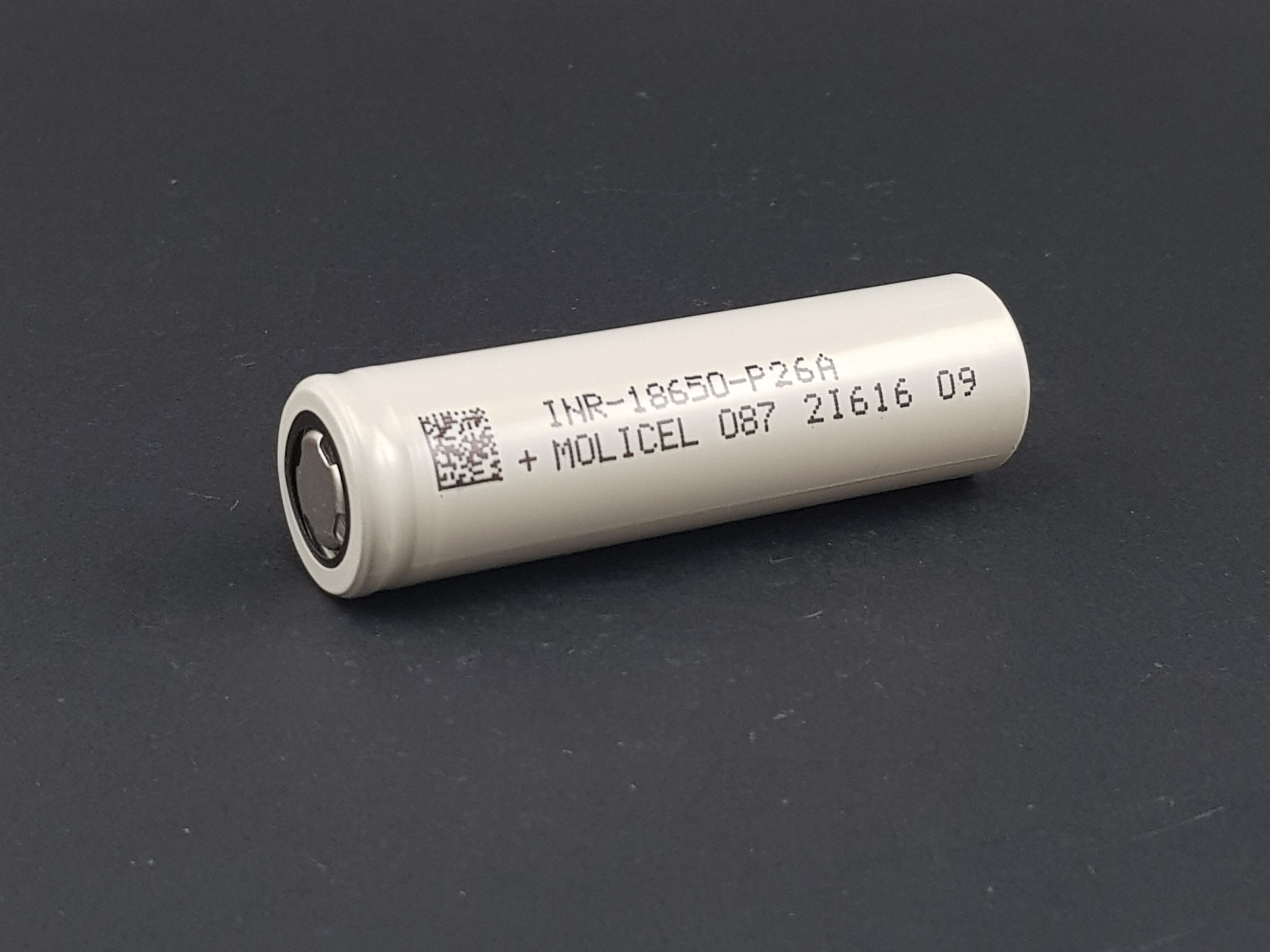 Molicel P26A INR18650P26A je jedna od savremenijih 18650 3.6V/3.7V li-ion punjivih baterija koja može da pruži neverovatnih 35A prilikom pražnjenja, pokazala se najefikasnijom u akumulatorskim alatima, ručnim usisivačima, Vape modovima, električnim cigaretama i drugim zahtevnijim potrošačima. Molicel P26A INR18650P26A 18650 baterija dolazi bez elektronike za kontrolu punjenja i pražnjenja zbog toga za punjenje koristiti samo provereno originalne i kvalitetne lithium-ion punjače ili originalne punjače od alata. Maksimalni napon punjenja po ćeliji je 4.2V i nikako ne sme da bude veći od toga, takođe napominjemo da je za Molicel P26A minimanlni napon pražnjenja 2.5V i maksimalna struja punjenja čak 6A!