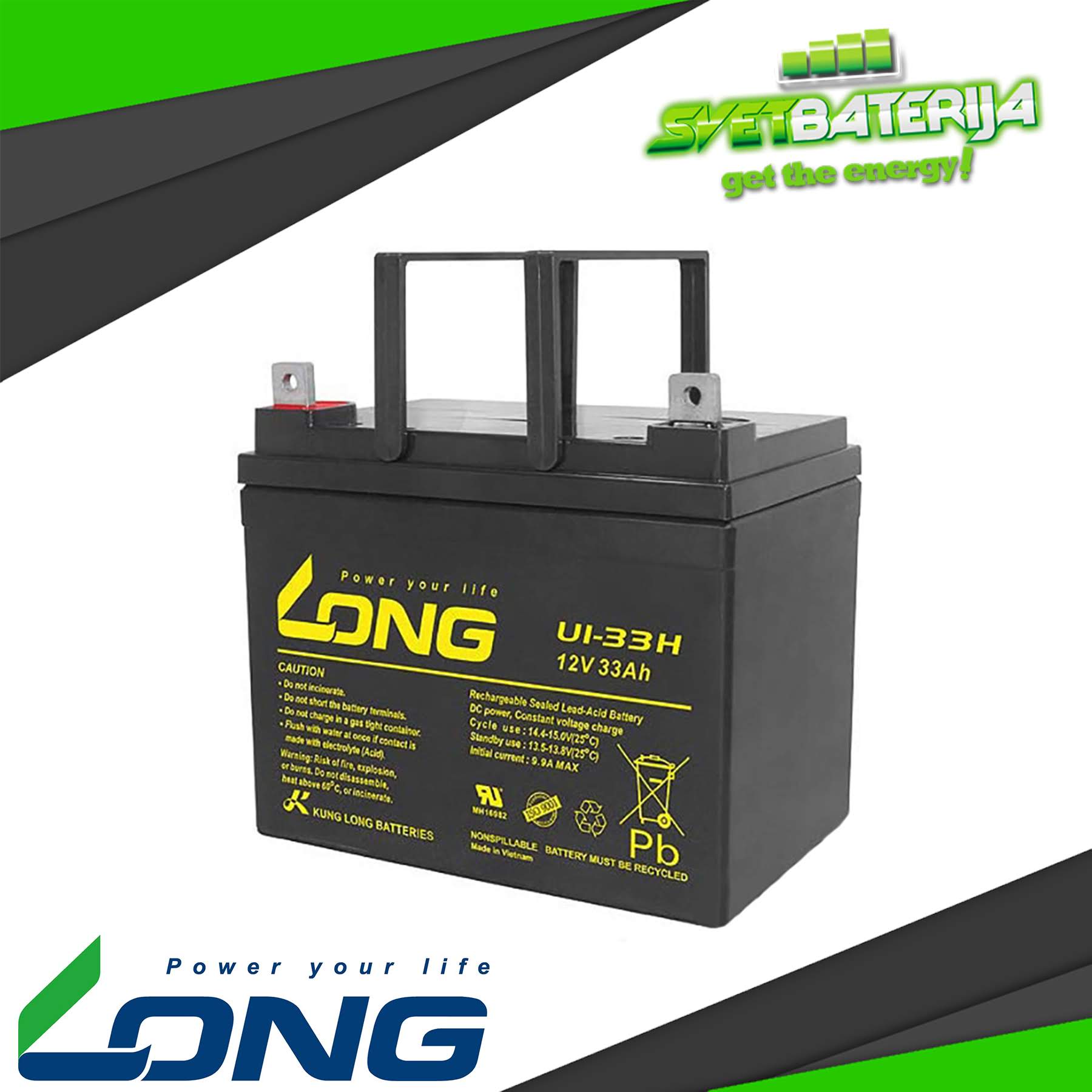 Kompanija Kung Long Batteries se bavi proizvodnjom i prodajom olovnih baterija na Tajvanu. Njihovi proizvodi obuhvataju AGM i Gel baterije, kao i druge tipove duboko cikličnih baterija. Long baterija 12V 33Ah pod oznakom U1-33H je specijalna baterija dimenzija 195x131x159 (180 totalna visina) mm, koja za razliku od drugih baterija ovog napona i kapaciteta može da obezbedi veće struje pražnjenja. Idealna za UPS i alarmne sisteme. Ova baterija obezbeđuje i dug životni vek u uređajima kao što su alarmne centrale, reflektori, kosačice i druge uređaje gde se traži suva baterija sličnih dimenzija ili karakteristika.