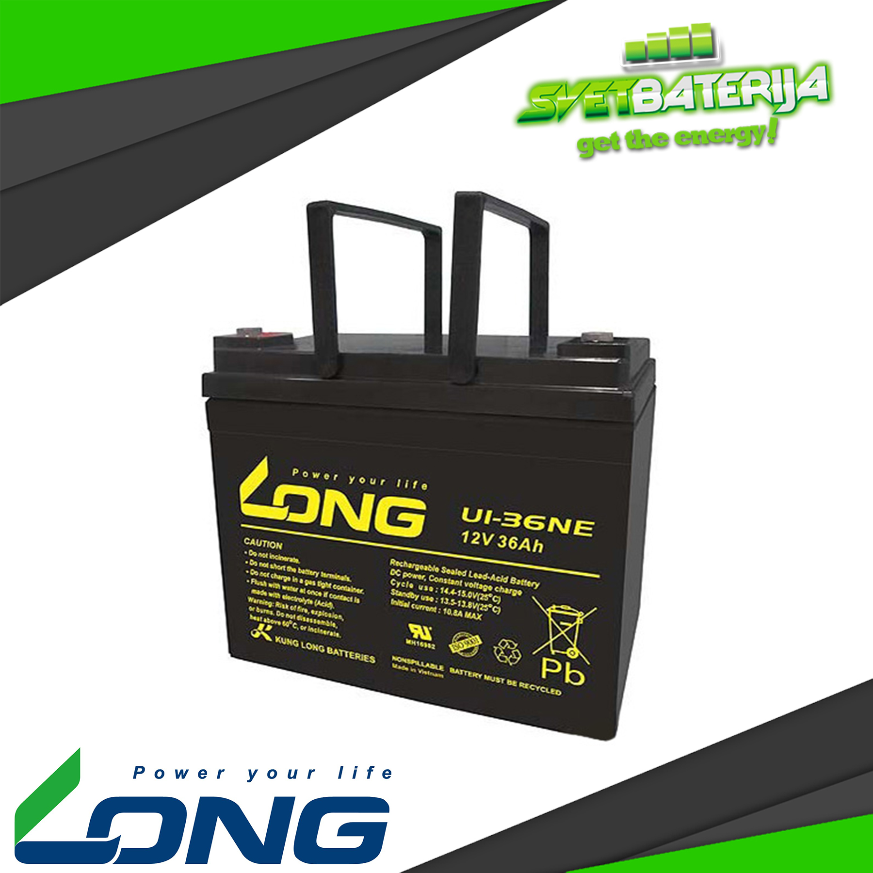 Kompanija Kung Long Batteries se bavi proizvodnjom i prodajom olovnih baterija na Tajvanu. Njihovi proizvodi obuhvataju AGM i Gel baterije, kao i druge tipove duboko cikličnih baterija. Long baterija 12V 36Ah pod oznakom U1-36NE je specijalna baterija dimenzija 193x126x159 (168 totalna visina) mm, koja za razliku od drugih baterija ovog napona i kapaciteta može da obezbedi veće struje pražnjenja. Idealna za elekrtična vozila kao i tipove invalidskih kolica. Ova baterija obezbeđuje i dug životni vek u uređajima kao što su alarmne centrale, reflektori, dečije igračke, prskalice, kosačice, lampe i druge uređaje gde se traži suva baterija sličnih dimenzija ili karakteristika.