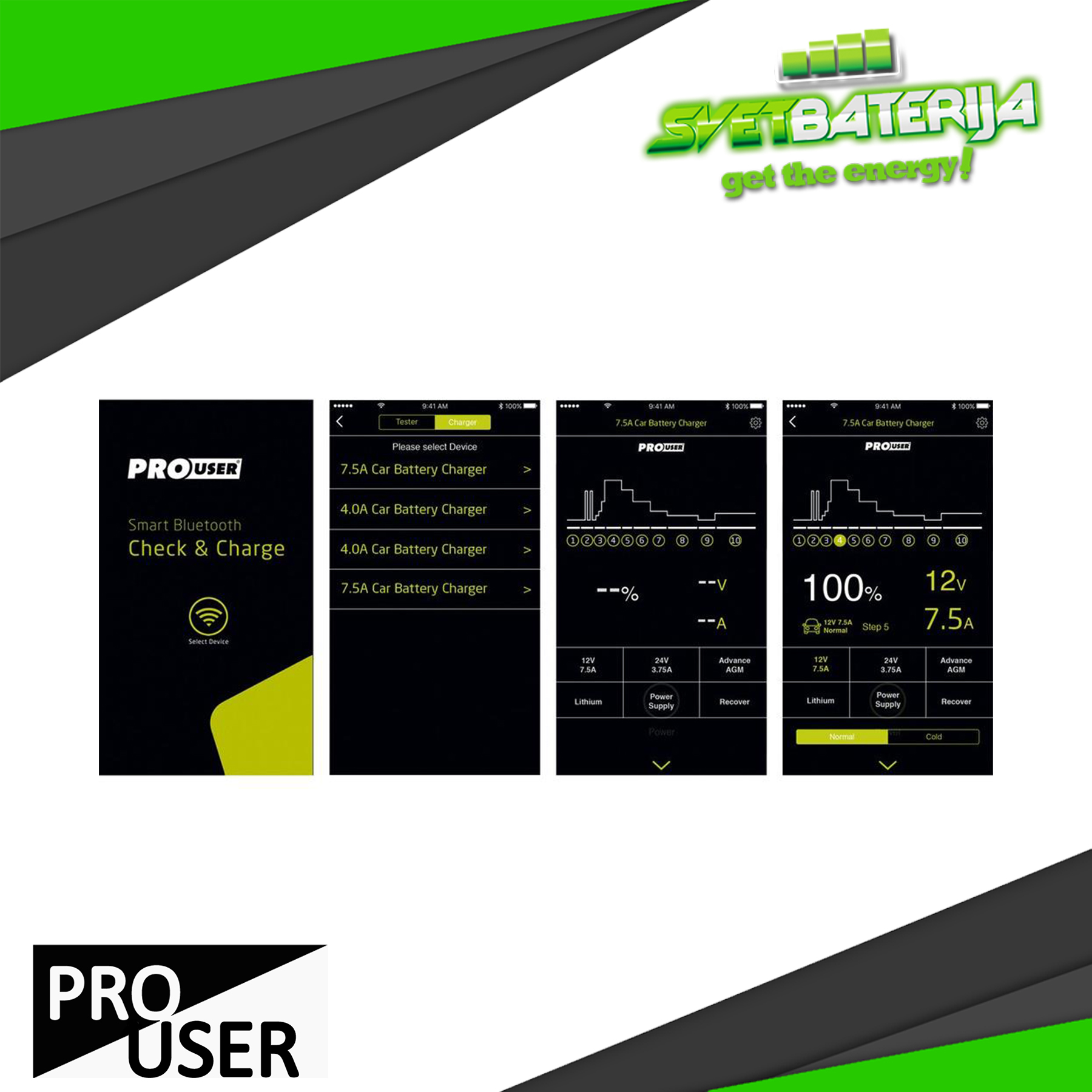 Inteligentan automatski punjač akumulatora sa Bluetooth konekcijom za punjenje svih vrsta akumulatora sa mogućnošću praćenja rada punjača preko "Check & Charge" interfejsa.