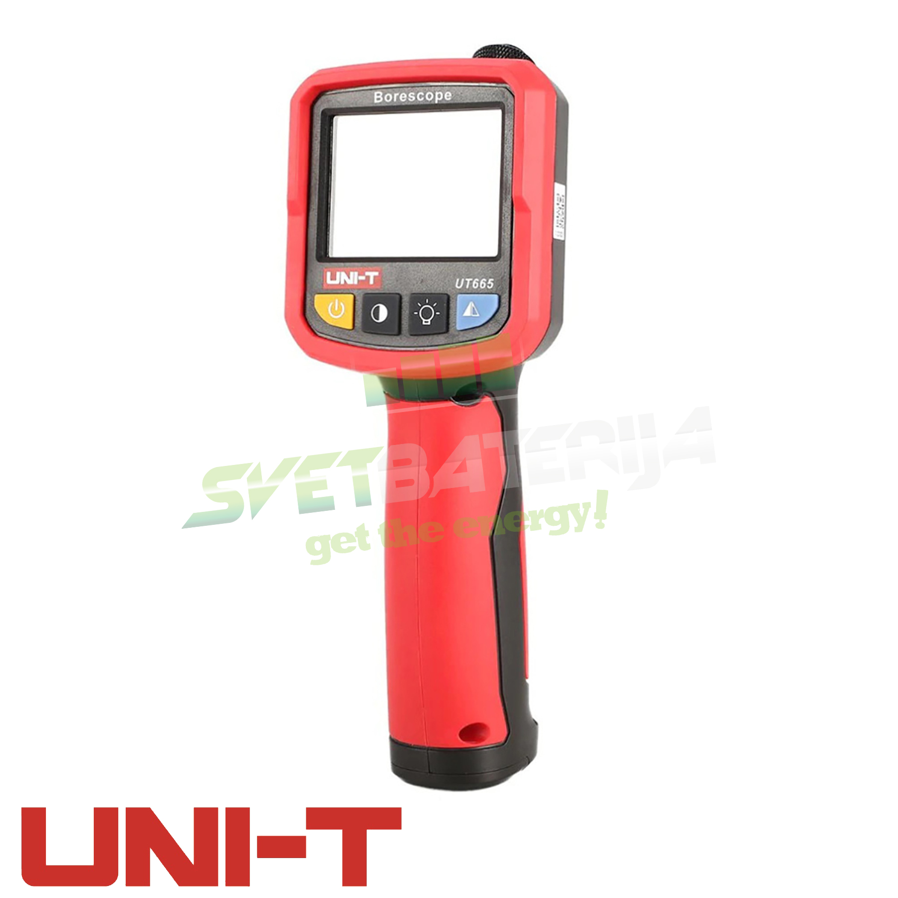 UNI-T UT665 je boroskop kamera industrijskog dizajna i kvaliteta, namenjena za vizuelnu inspekciju nepristupačnih delova. Pretežno je koriste automehaničari, avio inženjeri, električari, vodoinstalateri, takođe je odlična i za pregled industrijskih mašina i motora! Ima četiri komande on/off, podešavanje jačine svetla na ekranu ili na samoj kameri, taster za rotaciju slike.