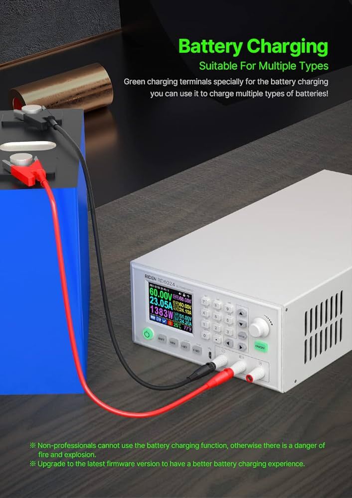 Riden RD6024 je programabilni DC napajanje visokih performansi, sa maksimalnim izlaznim naponom od 60V i strujom do 24A, što ga čini idealnim za različite laboratorijske, servisne i industrijske primene. Ovaj uređaj omogućava precizno podešavanje izlaznog napona i struje, sa visokom stabilnošću i niskim šumom. Integrisan LCD ekran prikazuje detaljne parametre, uključujući izlazni napon, struju i snagu u realnom vremenu.